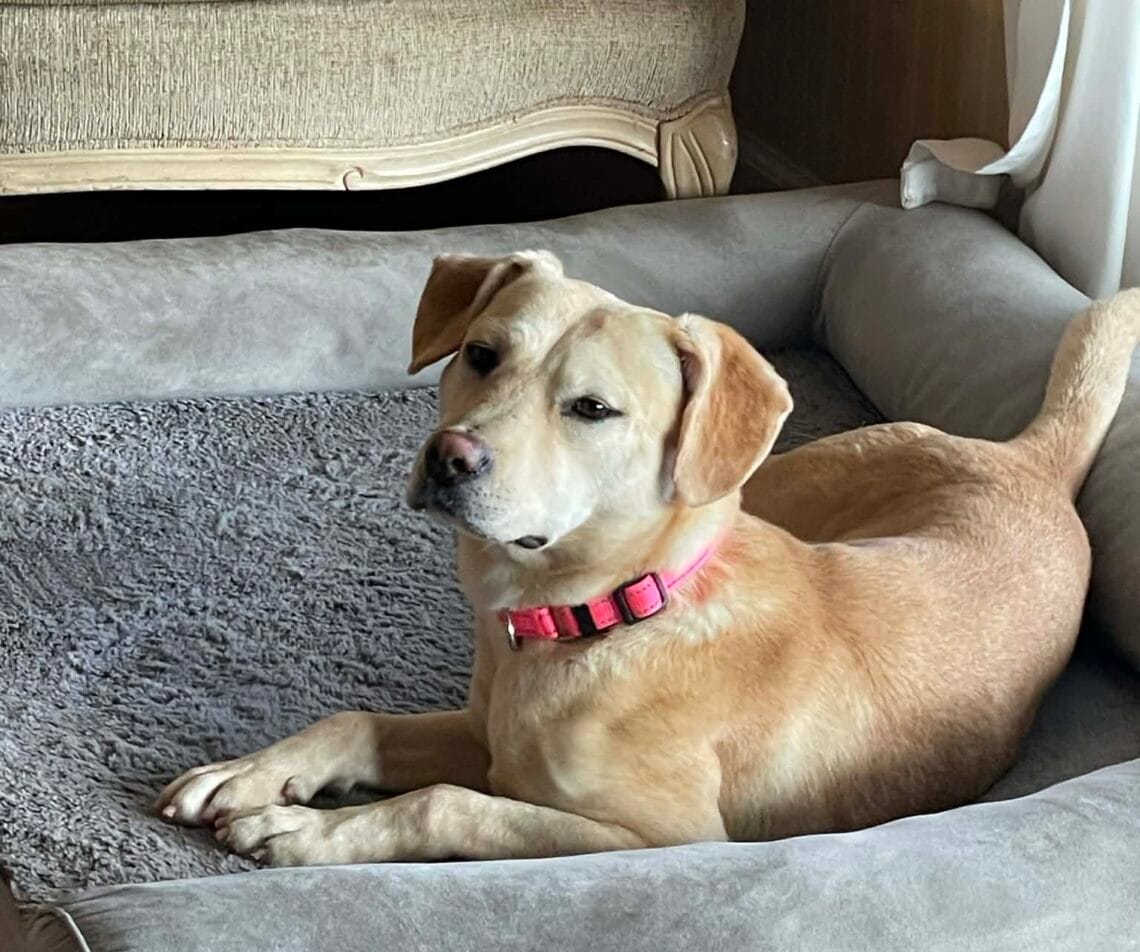3. Honey sleeps through the night in her crate. It’s a nice roomy one so she can stretch out. If she barks while in the crate at night, it’s because she needs to go out. Most nights she hasn’t needed to be taken out. I believe she would love to sleep in her owner’s bed, but we haven’t started that, not knowing how her adopter would feel about it. We do not crate her for long periods of time, other than at night.